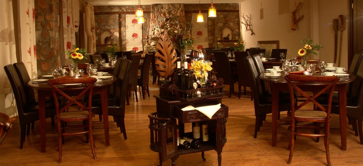 Μπορείτε να γευτείτε νόστιμες σπεσιαλιτέ της παραδοσιακής Ελληνικής και τοπικής μας κουζίνας, στο εστιατόριο του ξενοδοχείου, μαγειρεμένα σε πήλινο και σε παραδοσιακό ξύλινο φούρνο, κυνήγι της περιοχής, το τοπικό λουκάνικο "Βωλακιότικο", ντόπια κρέατα, παραδοσιακό κους-κους, πλιγούρι, φασολάδα στο τσουκάλι που βράζει στο τζάκι, γευστικές σούπες και ζυμωτό ψωμί και φυσικά όλα αυτά σε συνδυασμό με τοπικό κρασί.